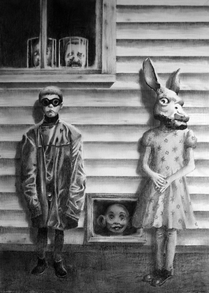 La infancia encajonada, atraída en la distancia que otorgan los años, un cuadro arriba, en apariencia sencillo, uno de esos cuadros por el que casi todo el mundo pasaría deprisa en un museo. El pintor ha inventado un gris, un tono difuso, apagado, melancólico, para mí, que me limito a mirar, a ver, a observar el dibujo tirando de mí, atrayente, en su esencia desprendida. Y de pronto me detengo, a pesar de que me queda poco tiempo y de que el museo es enorme, el dibujo me atrapa y me obliga a volcar la mirada, a sentirla. Dos tarros de vidrio, de ese vidrio antiguo que aún no conocía bien el plomo y su magia, traspasando dos cabezas cortadas, de venganza, de odio, o de tristeza y de añoranza por lo perdido sin remedio. Abajo, escrutando sonriente como sólo lo saben hacer la ignorancia y la envidia, un ser espantoso, risueño, que acapara la visión y la enmudece. Cuatro esquinas abandonadas sobre la pared del museo, pendiente la tela de unos hilos finísimos, casi invisibles.