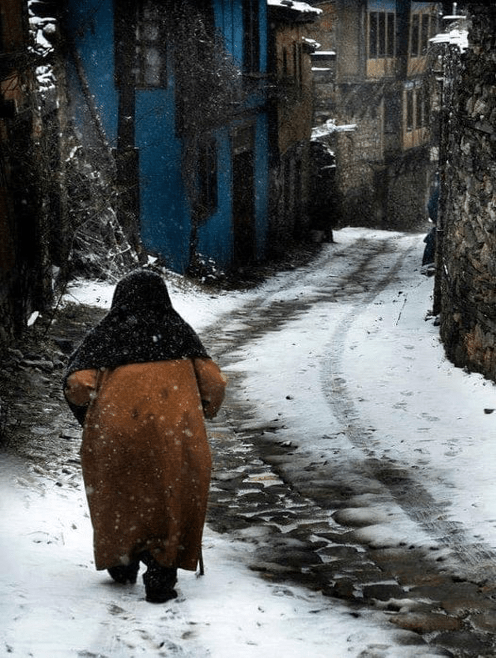 La calle nunca pasa. Un vacío en el blanco manto. El tiempo congelado. Sólo las grises piedras alfombran los zapatos viejos de esta vieja entrañable.
