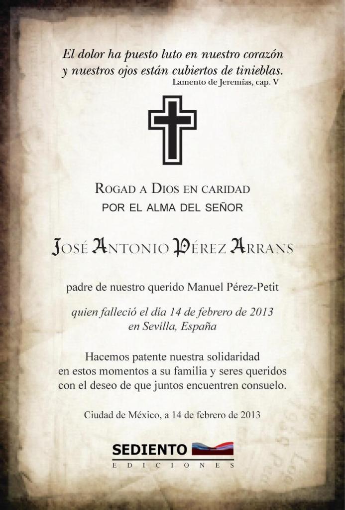 Fruto de su matrimonio, el 20 de enero de 1967, nací yo, que me estoy guardando lo que no escribo, pues valgo más por lo que callo –y también en los demás ámbitos de mi vida– que por lo que digo. Tengo para escribir lo inimaginable. Para mí es como una sombra que nunca pude ver a la luz y que he ido y seguiré descubriendo. Me parezco mucho a él, salvo en lo listo y lo guapo –así soy de inútil para la vida práctica–, y está tan presente en mí que, a veces, me asusto. Lo echo de menos tanto que no puedo ni expresar lo que ese hombre –en realidad tan ajeno y tan íntimo a mí– supone en mi vida. Falleció tal día como hoy, 14 de febrero, de hace 11 años. ¡Qué más quisiera que haber llegado a conocerte! Al menos, Dios me premió al permitirme ser la última persona que mantuvo una conversación contigo, junto antes de echarte a dormir, a tres días de morirte.