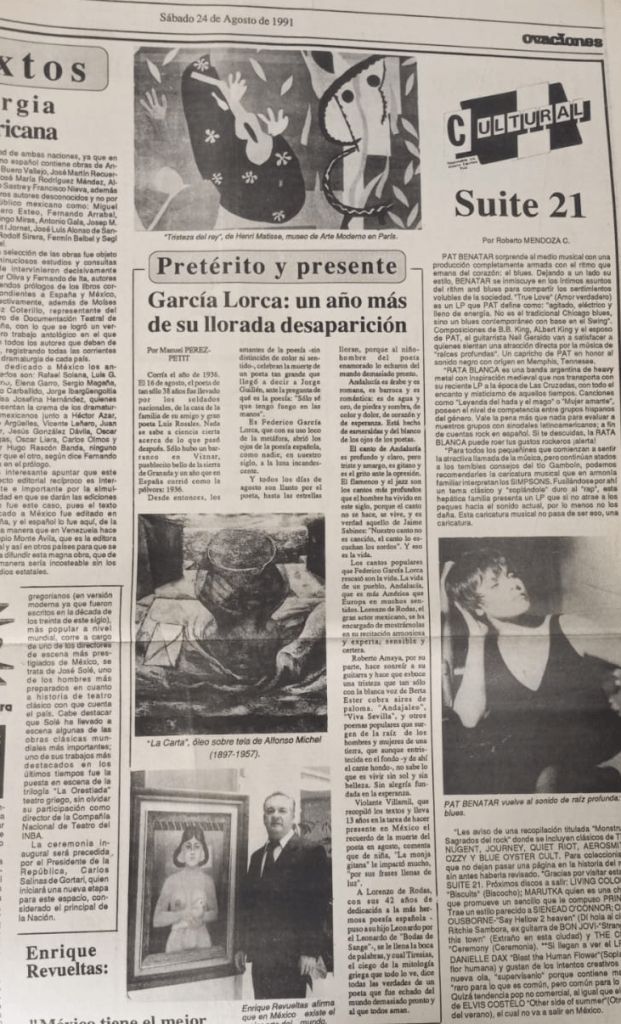 En julio y agosto de 1991 fui reportero del diario Ovaciones que, por entonces, era generalista y tenía dos ediciones: la matutina, seria, y la vespertina, a cuya redacción yo pertenecía, popular y con una tercera al estilo de los sensacionalistas ingleses, con imágenes picantes de señoritas voluptuosas. Me encantaba salir del periódico y hacer tertulia con los compañeros, de los que hoy no solo no sé nada sino que apenas recuerdo algunos nombres: el maestro José Luis Arenas, Juan Carlos Villaroel... A veces nos acompañaba el jefe de información, Arnoldo Piñón. Nos íbamos al Sanborns del Ángel o a algunos Vips que hoy no podría localizar.