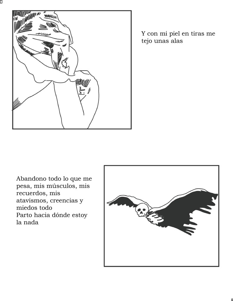 Poco a poco la escritura fue enriqueciendo las formas en las que me expresaba, ahora experimento con la narrativa gráfica y los cómics porque me parece que el texto y la imagen establecen un fuerte vínculo que proporciona variedad y riqueza a mi narrativa.