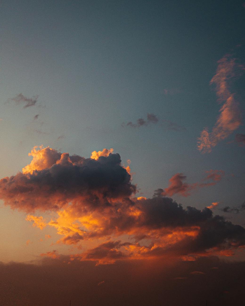 Llevó la vista al horizonte y el cielo tenía bellas nubecitas, un tanto aborregado en tonos entre azul y naranja, una vista sumamente hermosa, que indudablemente invitaba a relajarse. Vino a la mente una frase que solía decirle su amigo Renato cuando le compartía atardeceres o amaneceres, el cielo tiene tonos baby blue.