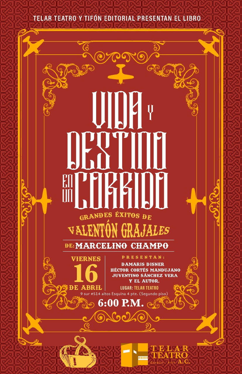 Conozco a Marcelino Champo desde que él era adolescente y comenzaba a aparecer como actor en obras de teatro; luego he leído y comentado sus primeras tentativas literarias que poco a poco se fueron volviendo papalotes a los que soltaba cada vez con mayor confianza el hilo. Vida y destino en un corrido. Grandes éxitos de Valentón Grajales es ya una cometa en el centro del cielo. Y eso me da muchísimo gusto. Qué bueno que en Chiapas haya cada vez más y mejores novelistas. Felicidades, querido Marcelino.